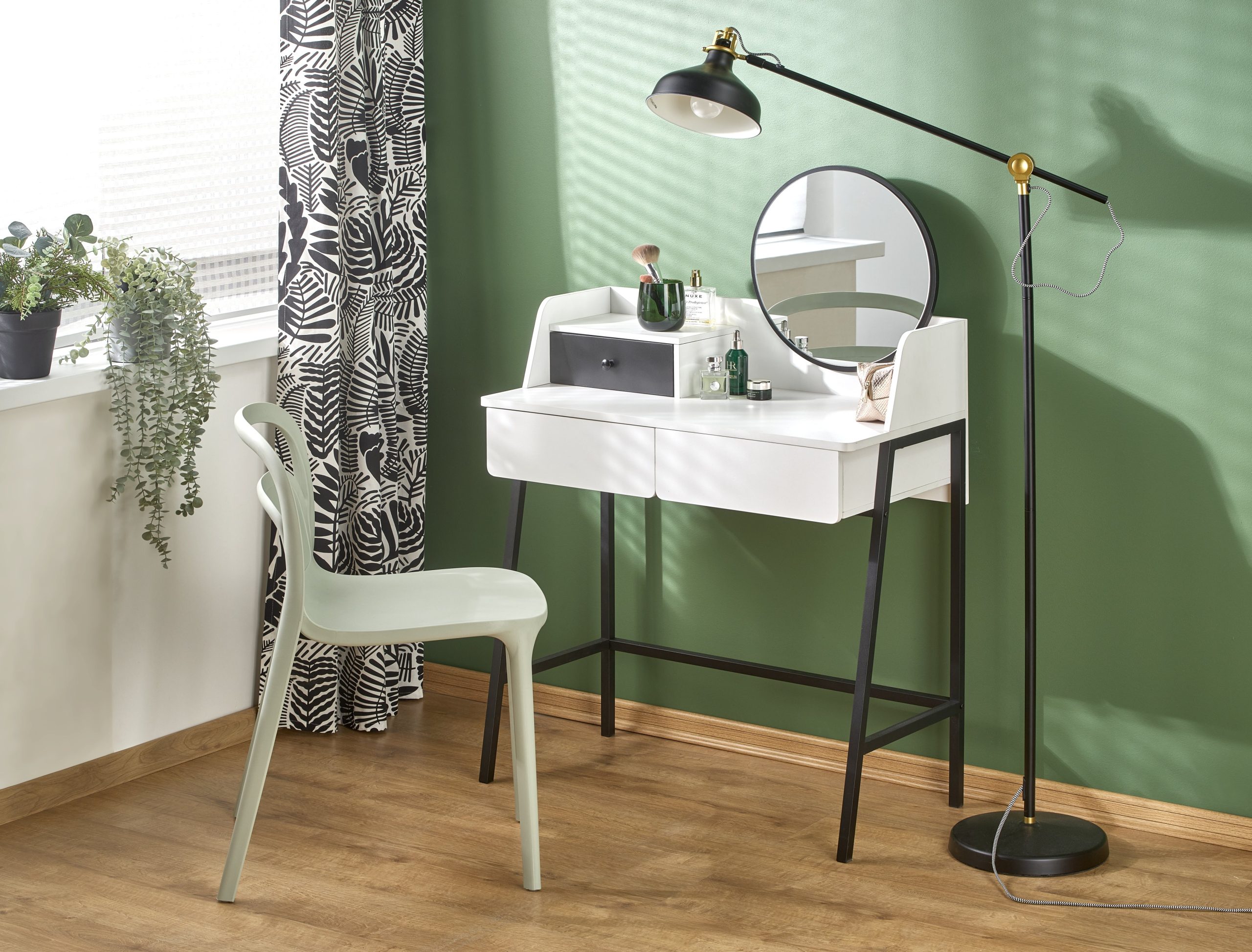 méretek: 80/42/120 cm, anyag: tükör / laminált forgácslap – melamin / porfestett acél, szín: fehér / fekete