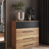 Az AKTIV ipari stílusával és szokatlan kidolgozásával bármilyen belső térnek egyedi karaktert kölcsönöz. A mélyfekete és természeretes faerezet kombinációja dinamikus mégis kontrasztokkal teli tökéletes összhangot teremt. A több emeből álló kollekció végtelen elrendézési lehetőséget kínál, míg a praktikus tervezési megoldások lehetővé teszik egy gyönyörű és funkcionális belső tér megteremtéséhez. A legmagasabb minőségű MDF-ből készült keretek és hangulatvilágítás a program néhány előnye.