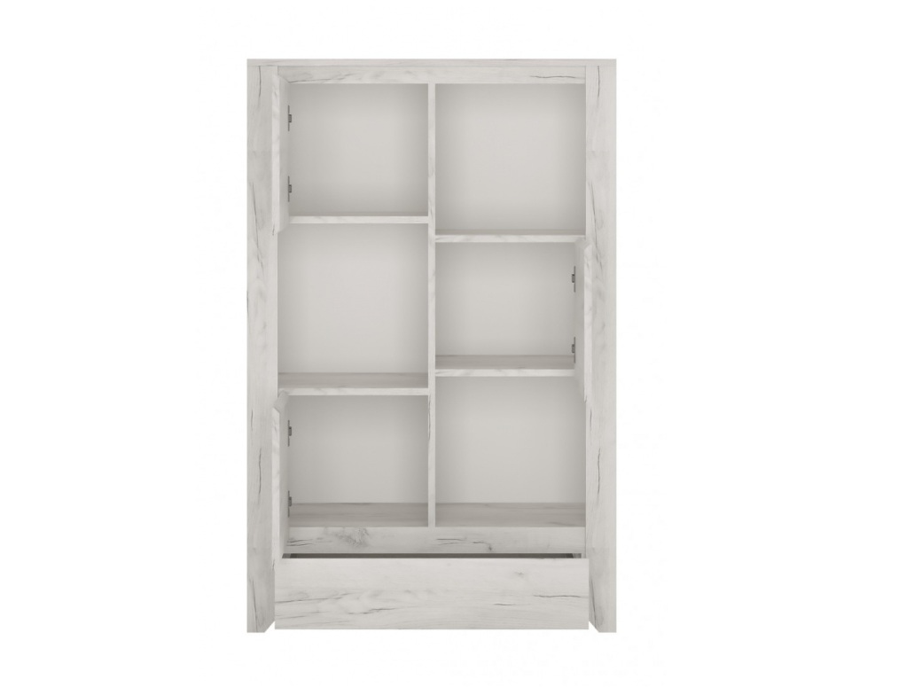 Három ajtós egy fiókos polcos szekrény.