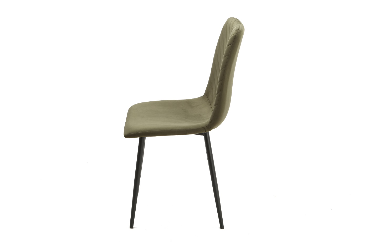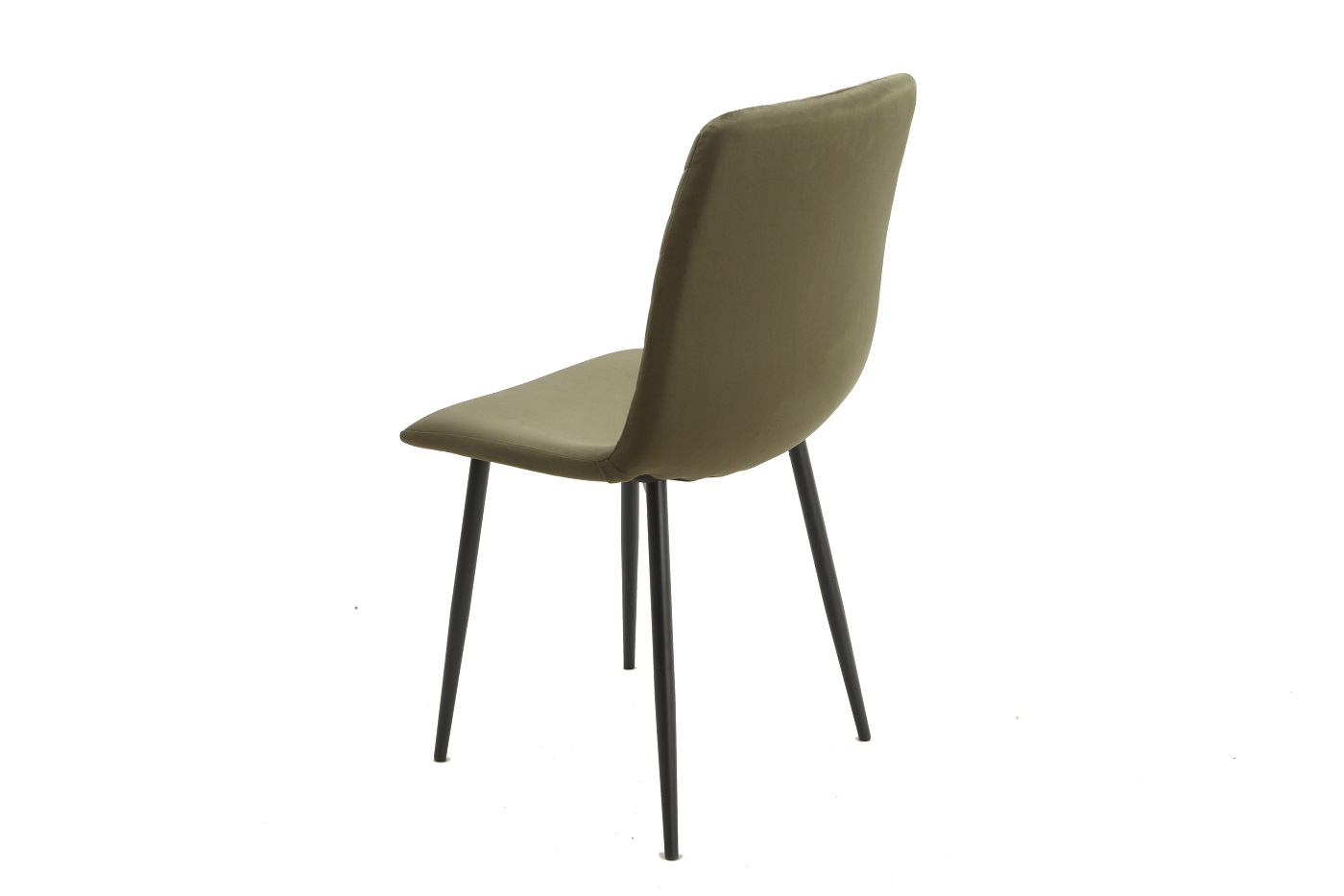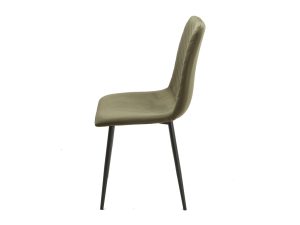 Porszórt fekete fém lábbal, zöld bársony kárpitozással.