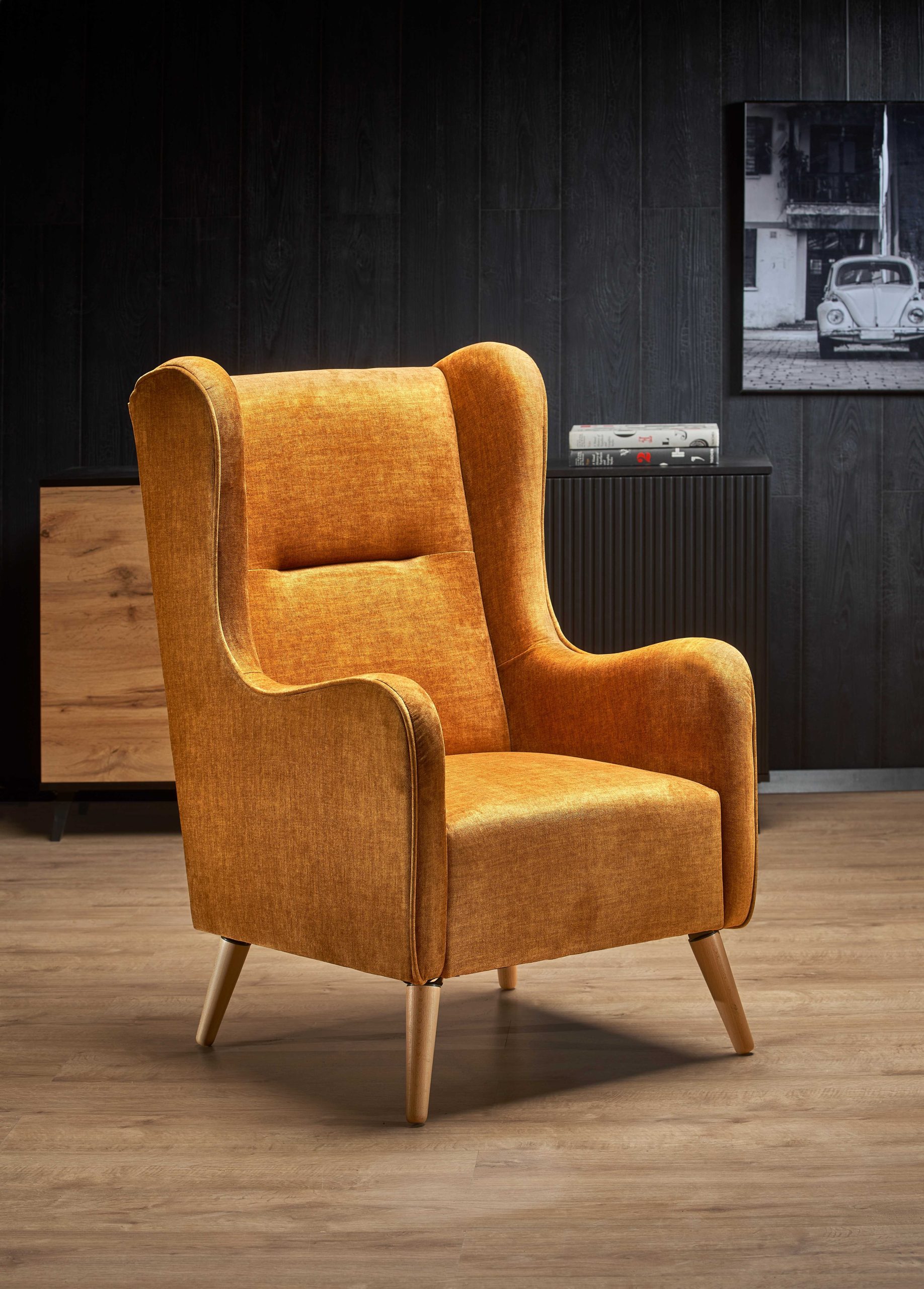 méretek: 67/85/114/47 cm, matéria: szövet / tömörfa, színek: kárpit – méz, lábak – natúr, (választható szín N1, N3 és N4).