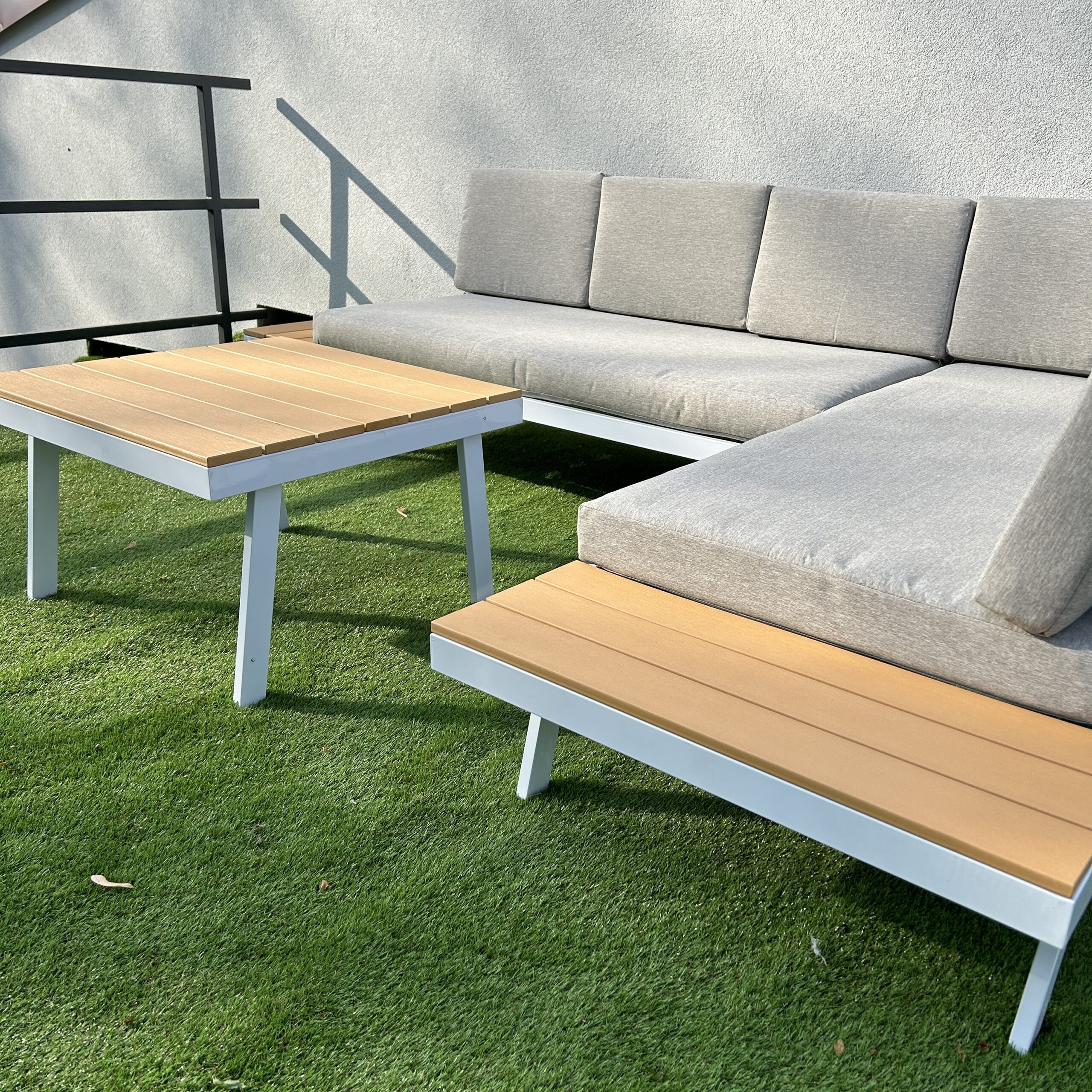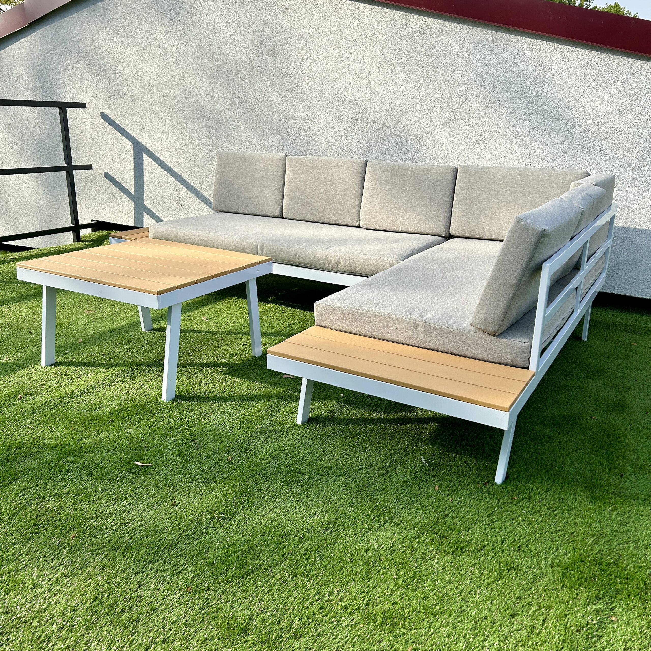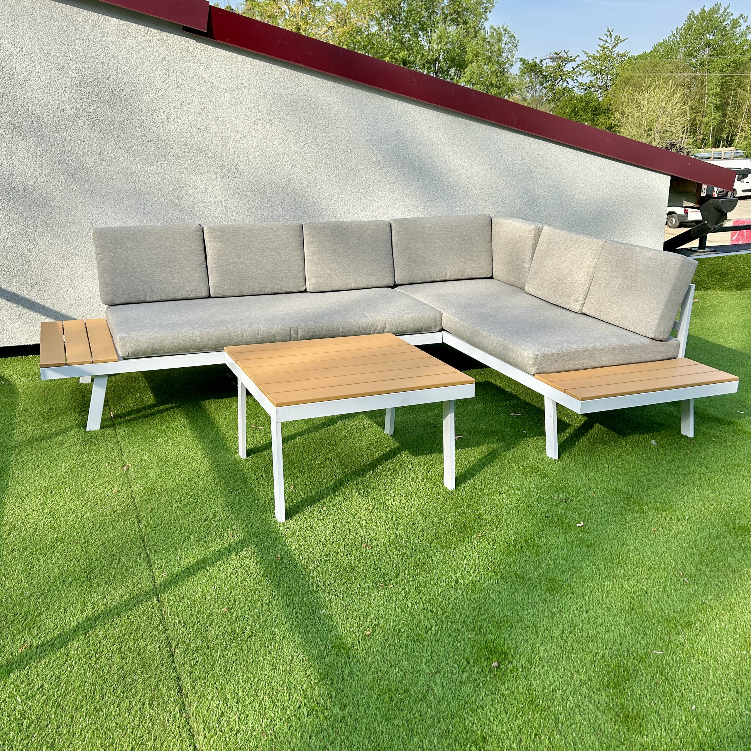 Pihenés vagy relaxáció a csillagokkal teli égbolt alatt a kertjében? A 2 részes Chill kerti szettel ez az ötlet valóra válhat. A készlet sarokrészt és dohányzóasztalkát tartalmaz. A szükséges stabilitásról az acél konstrukció fehér kivitelben gondoskodik.  A Chill szetthez világosszürke cipzáros párnák is tartoznak, amelyek gondoskodnak a kényelemről ülés közben.