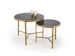 FATIMA két dohányzóasztal szett, fekete márvány / arany