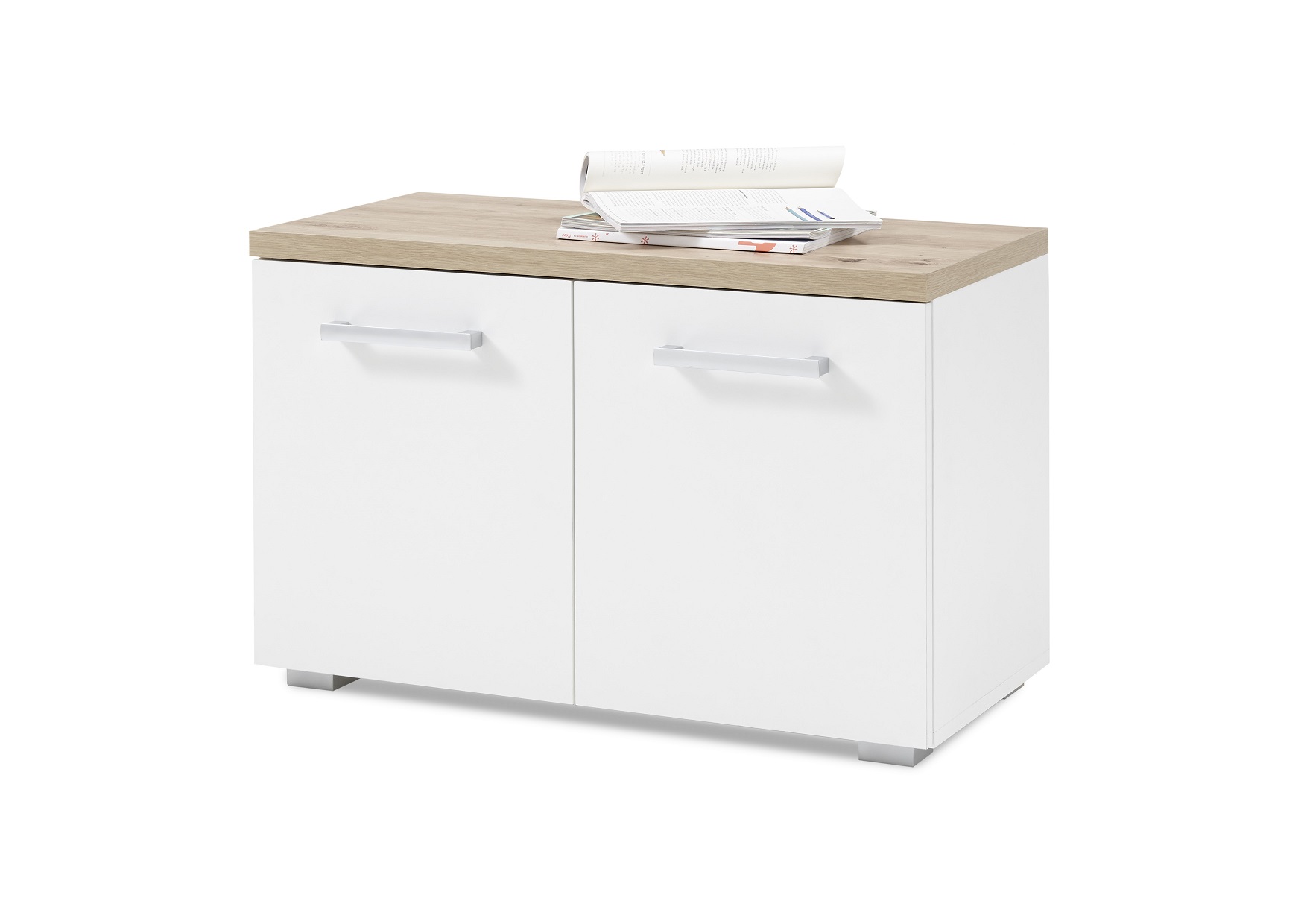 Két ajtós cipőspad Artisan tölgy/fehér színben.