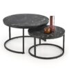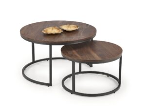 méretek: 79/47 cm és 59/37 cm; két darabos szett, anyag: laminált MDF / porszórt acél, színek: dió / fekete