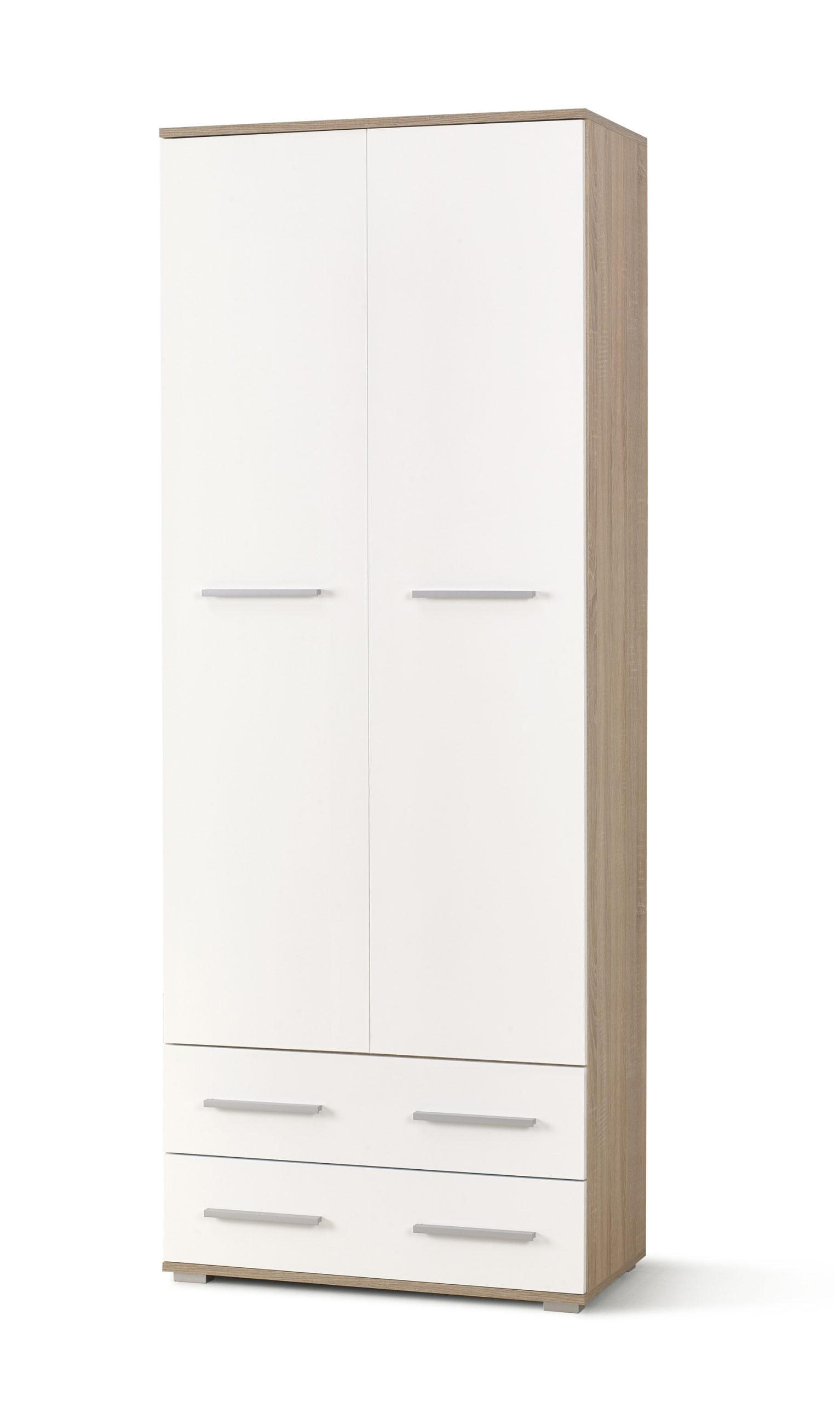 méretek: 77/40/200 cm, anyag: laminált faforgácslap / magasfényű, ABS élek, szín: sonoma tölgy-fehér