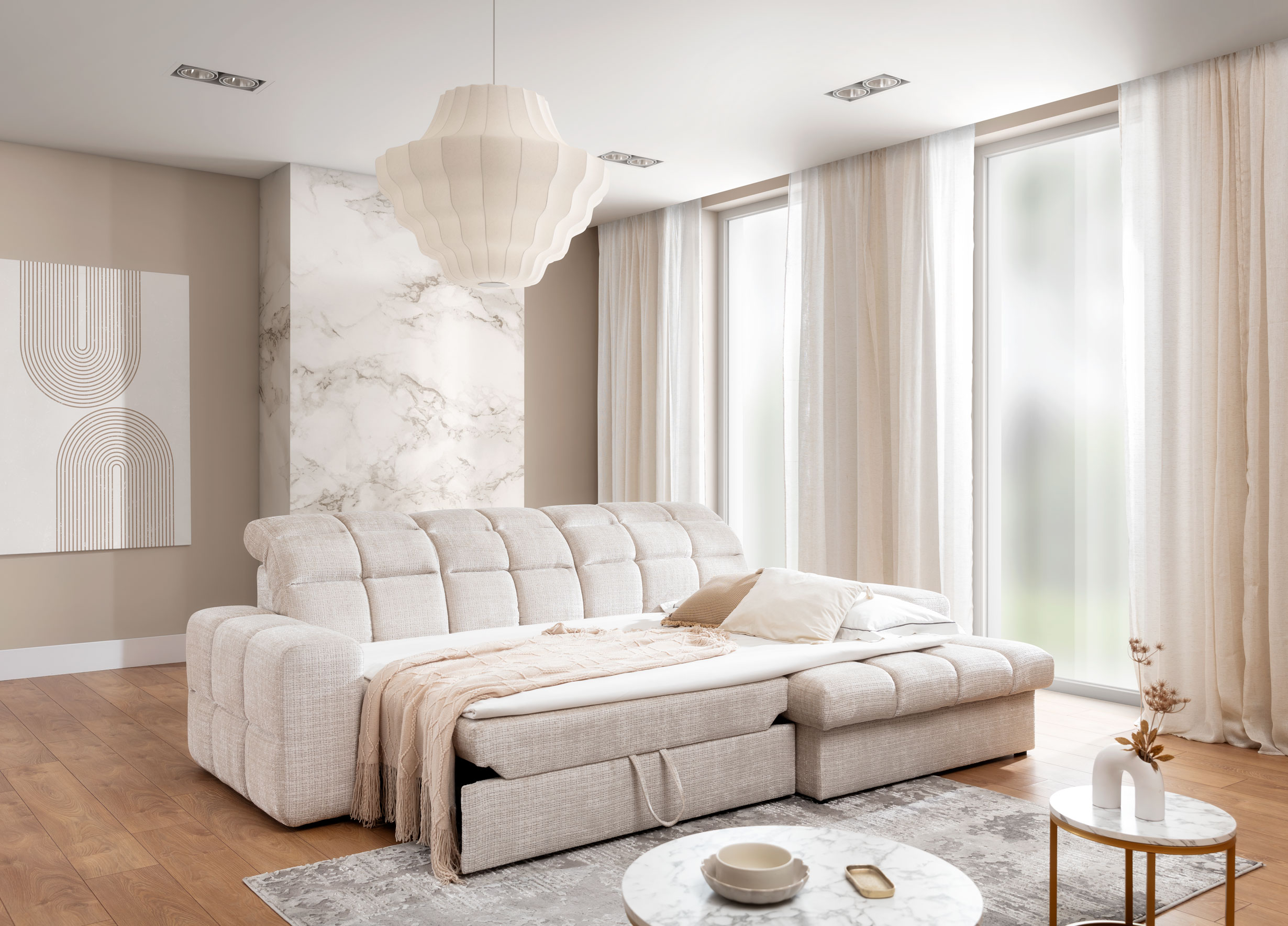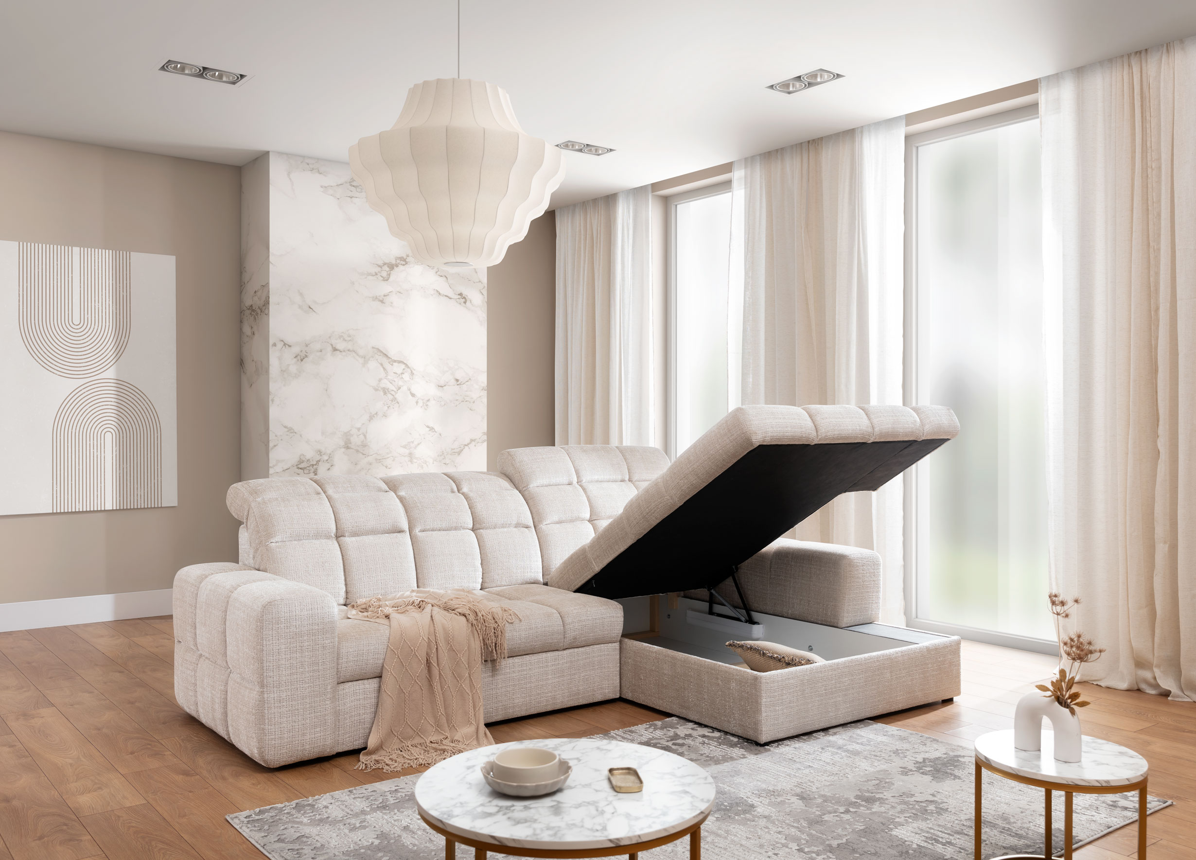 Az LUGO sarokkanapé egyedülálló kanapé azoknak, akik stílusos és funkcionális bútort szeretnének nappalijukba. A kényelem és praktikum jegyében tervezték, fő jellemzője a sokoldalúság. A minőségi vasalatoknak köszönhetően könnyedén állandó alvásra alkalmas ágynak nyitható, ha plusz fekhelyre lenne szükség és emellett nagy ágyneműtartóval rendelkezik.