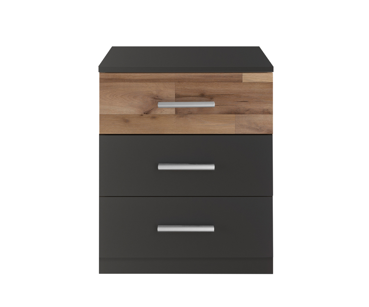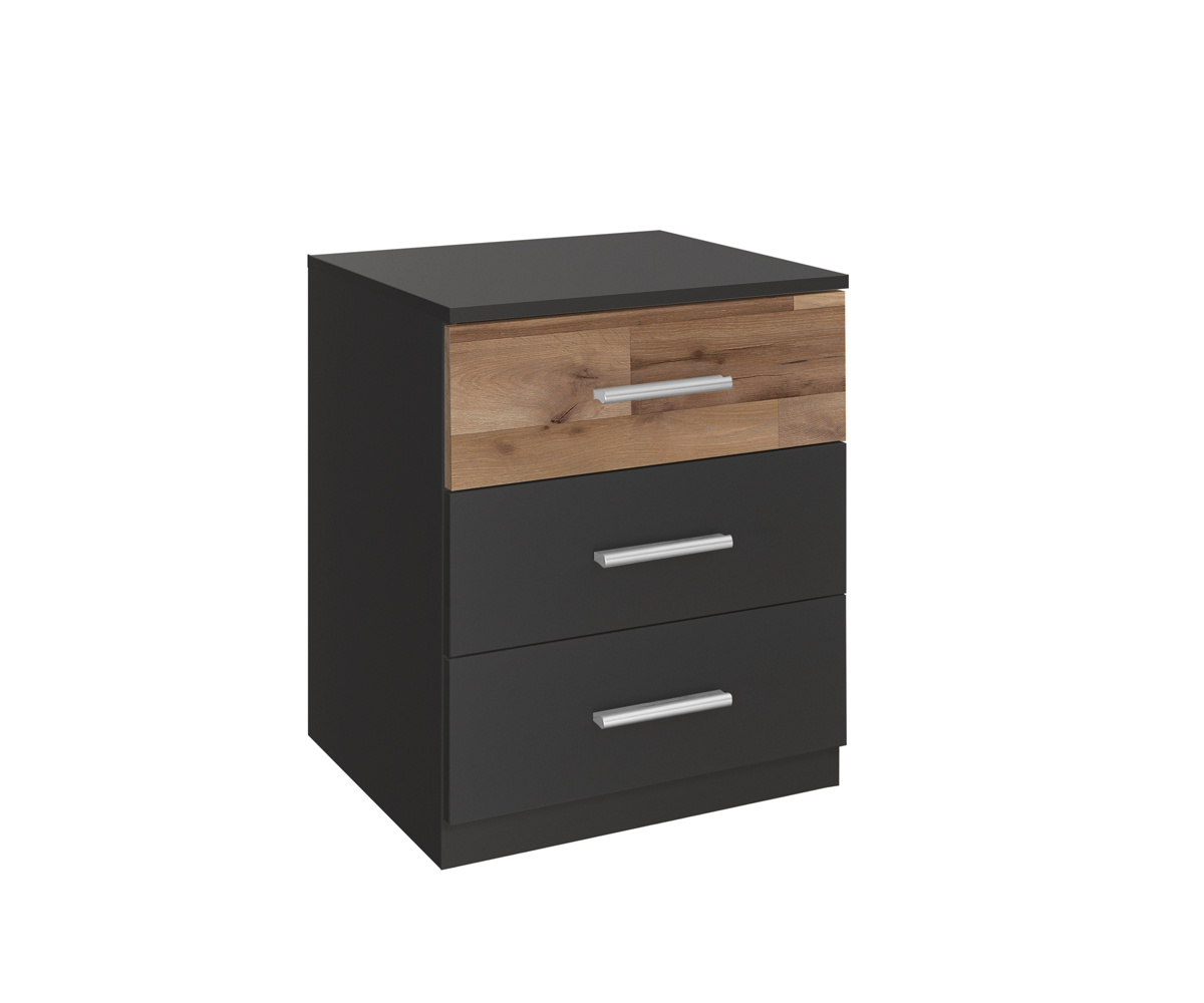 A MARS éjjeliszekrény szett, fiókos szekrény összesen három rekesszel rendelkezik.