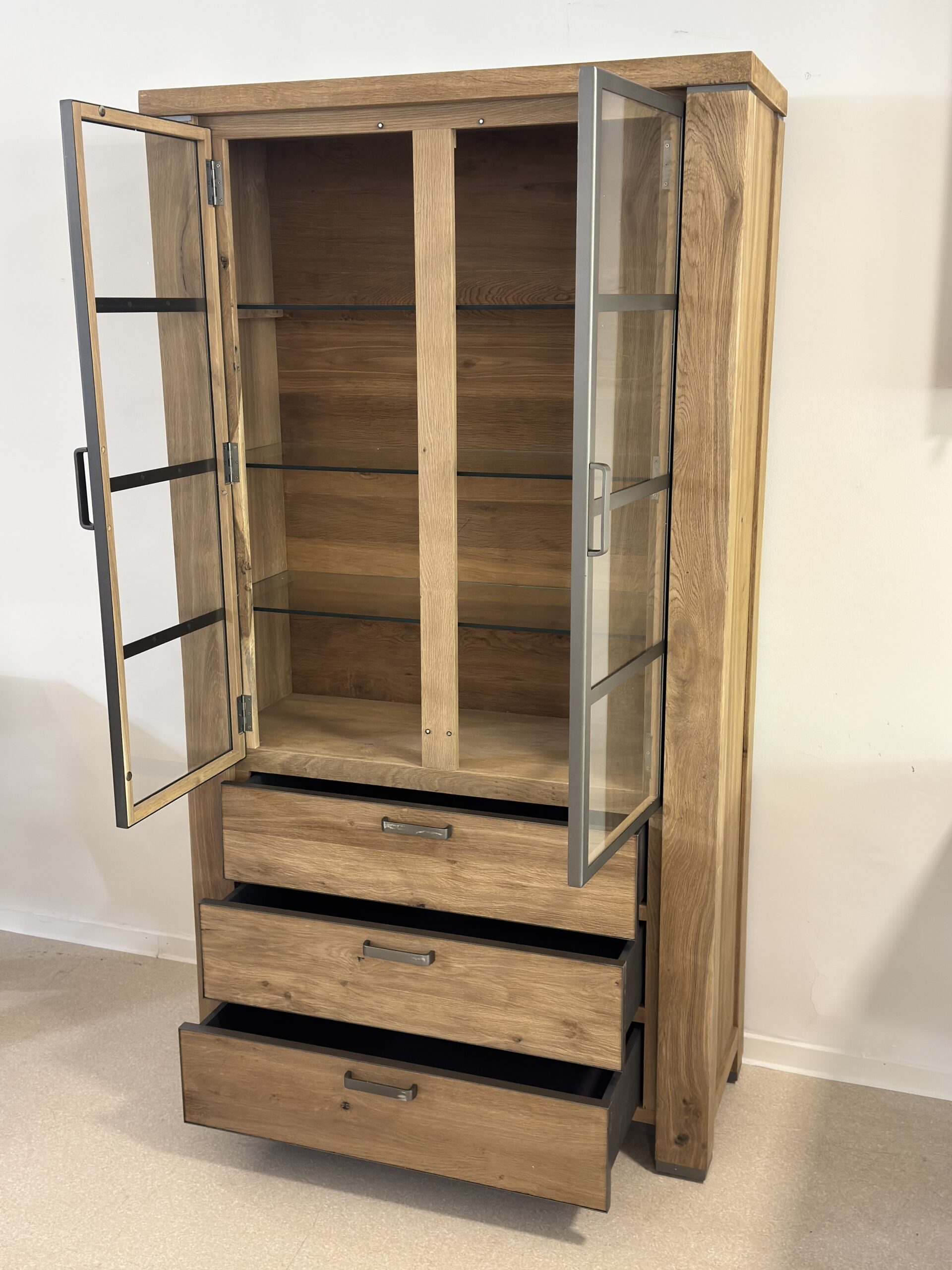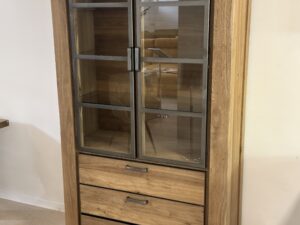Ez a klasszikus furmér stílusú tálalószekrény praktikus és dekoratív bútordarab. A szerkezet erős bútorlapból készült, fa hatású felülettel, amely rusztikus megjelenést kölcsönöz. Az alsó rész több fiókot tartalmaz a mindennapi használati tárgyak tárolására, míg a felső, üvegajtós polcok ideálisak poharak, tányérok vagy dísztárgyak kihelyezésére. Remek választás étkezőbe vagy konyhába, ahol fontos a stílus és a funkcionalitás.