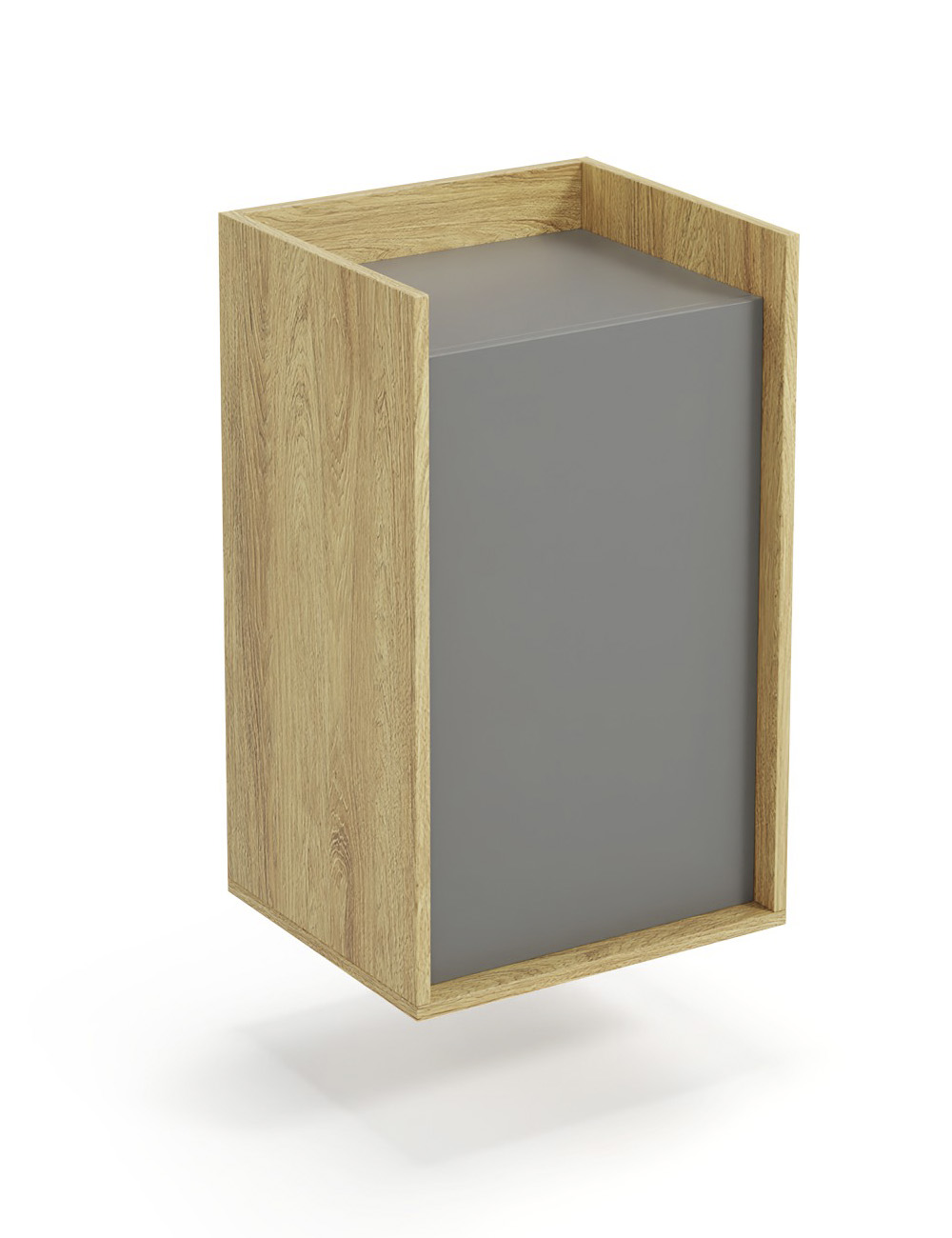 méretek: 50/41/83 cm, anyag: 18 mm vastag furnérozott bútorlap / absz élek / push-click nyitórendszer, szín: test – natúr hickory, frontok – porszürke