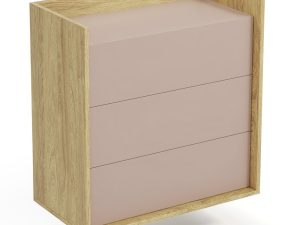 MOBIUS 3S fiókos komód test: natúr hickory, frontok – antik rózsaszínű