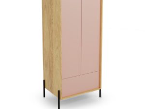 méretek: 78/60/179 cm, anyag: 18 mm vastag furnérozott bútorlap / absz élek / push-click nyitórendszer, szín: test – natúr hickory, frontok – antikolt rózsaszín
