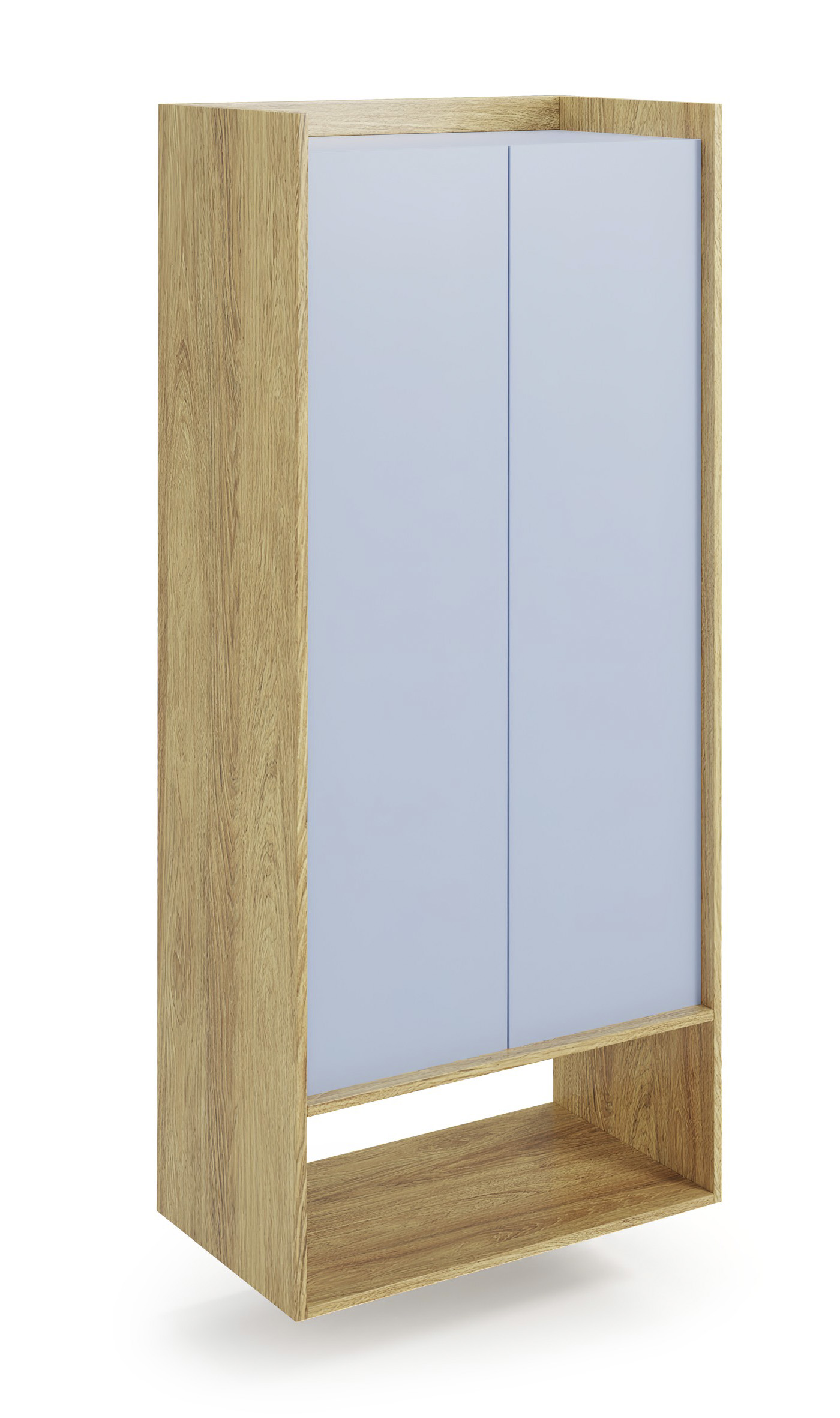 méretek: 78/41/179 cm, anyag: laminált faforgácslap, ABS élek, push-click mechanizmus, szín: hikora tölgy/világoskék
