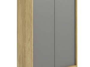 méretek: 78/41/179 cm, anyag: 18 mm vastag furnérozott bútorlap / absz élek / push-click nyitórendszer, szín: test – natúr hickory, frontok – poros szürke
