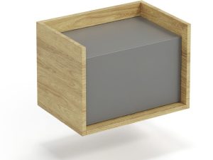 méretek: 50/41/36 cm, anyag: 18 mm vastag furnérozott bútorlap / absz élek / push-click nyitórendszer, szín: test – natúr hickory, frontok – porszürke
