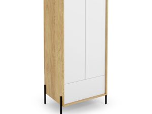 méretek: 78/60/179 cm, anyag: 18 mm vastag furnérozott bútorlap / absz élek / push-click nyitórendszer, szín: test – natúr hickory, frontok – alpesi fehér