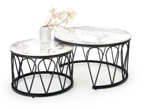 FORMOSA 2 db dohányzóasztal szett, fehér márvány
