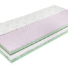 méretek: 120/200 cm, bemenet: bonnell rugó, távtartó kárpit, kókuszszőnyeg, poliuretán hab T-25, huzat: steppelt jacquard szövet – 120 g/m2, magasság: kb. 16 cm, keménység: közepes.