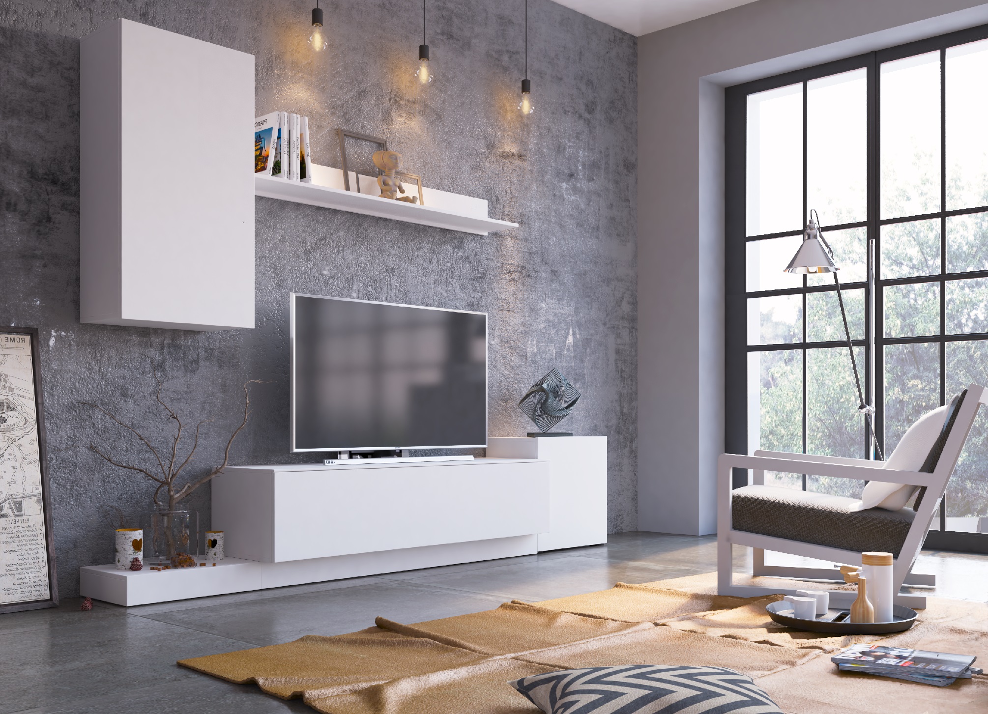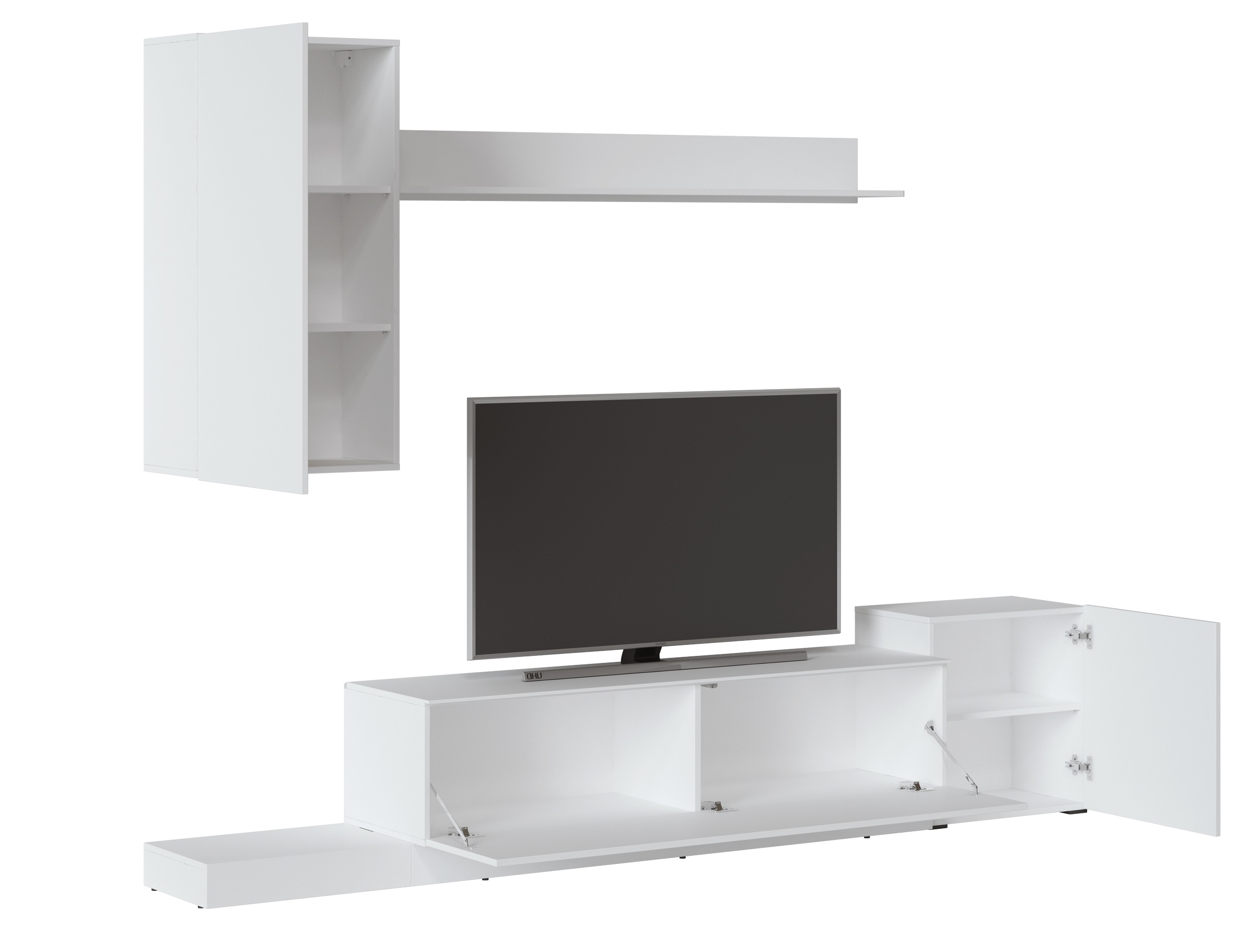 A Rimini modern kialakítású szekrénysor alpesi fehér színben.