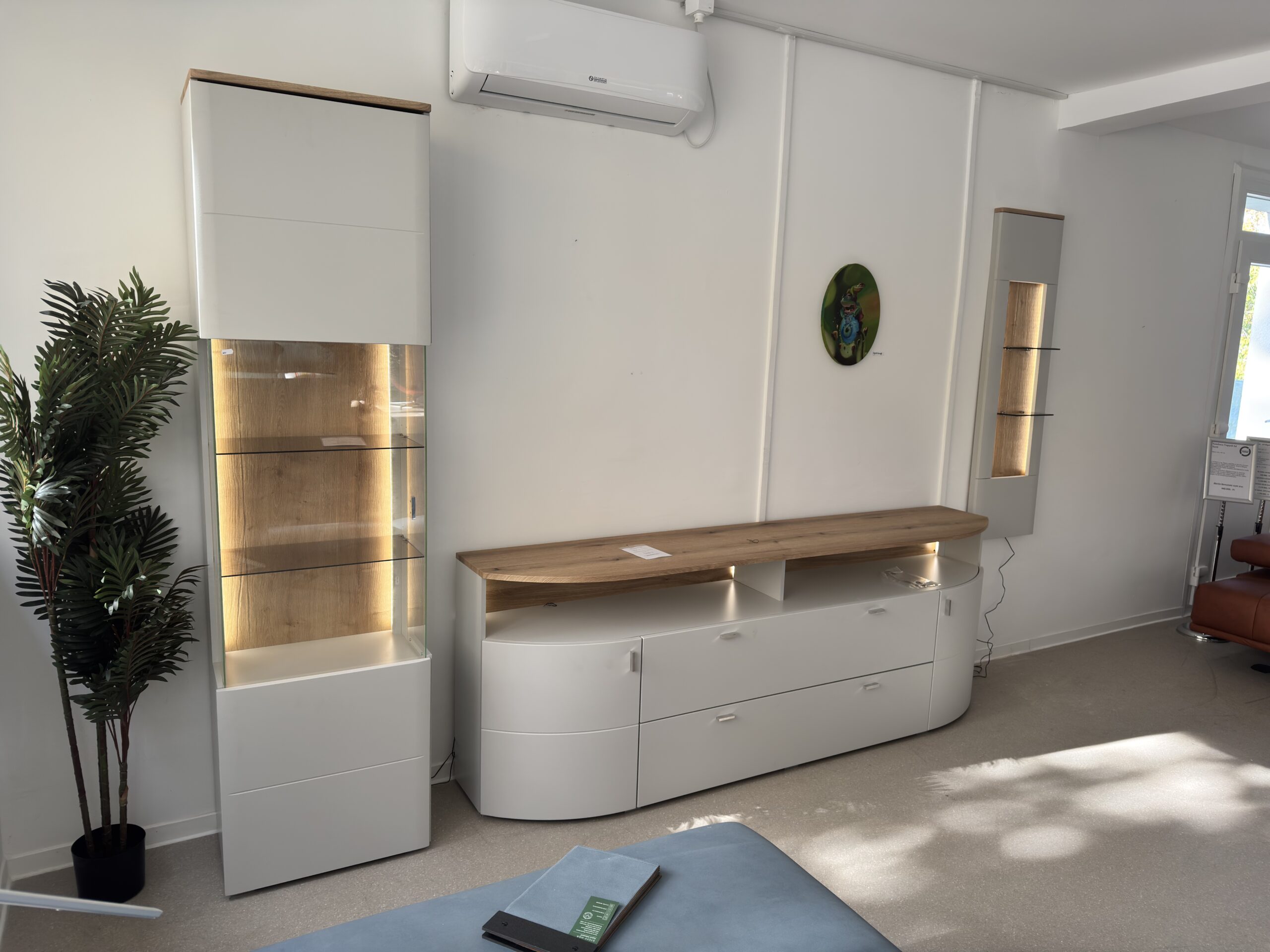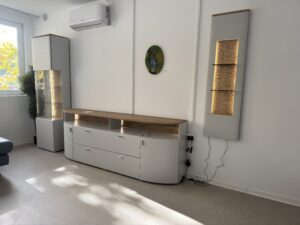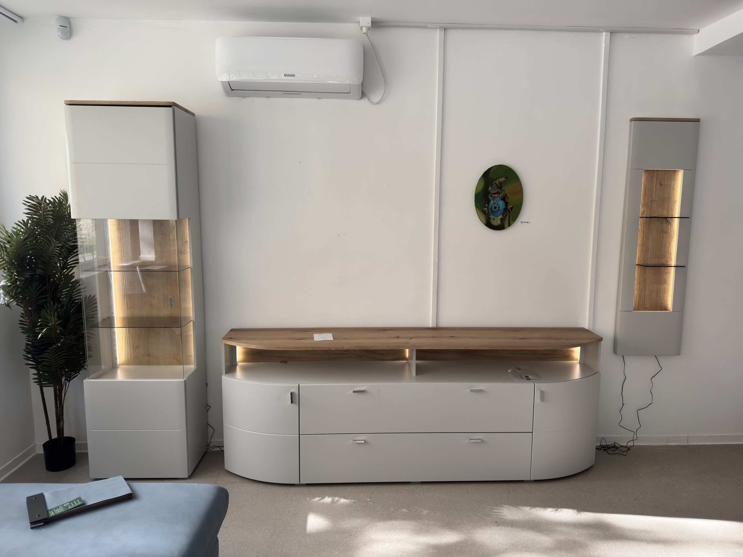 A SAMBUCA egy elegáns, nappaliba és étkezőbe tervezett bútorkollekció, világos szürke színben. Mind az előlapok, mind a felső panelek kiválló minőségű MEMBRÁNFÓLIÁBÓL készültek, ami kifinomult és tartós felületet biztosít.