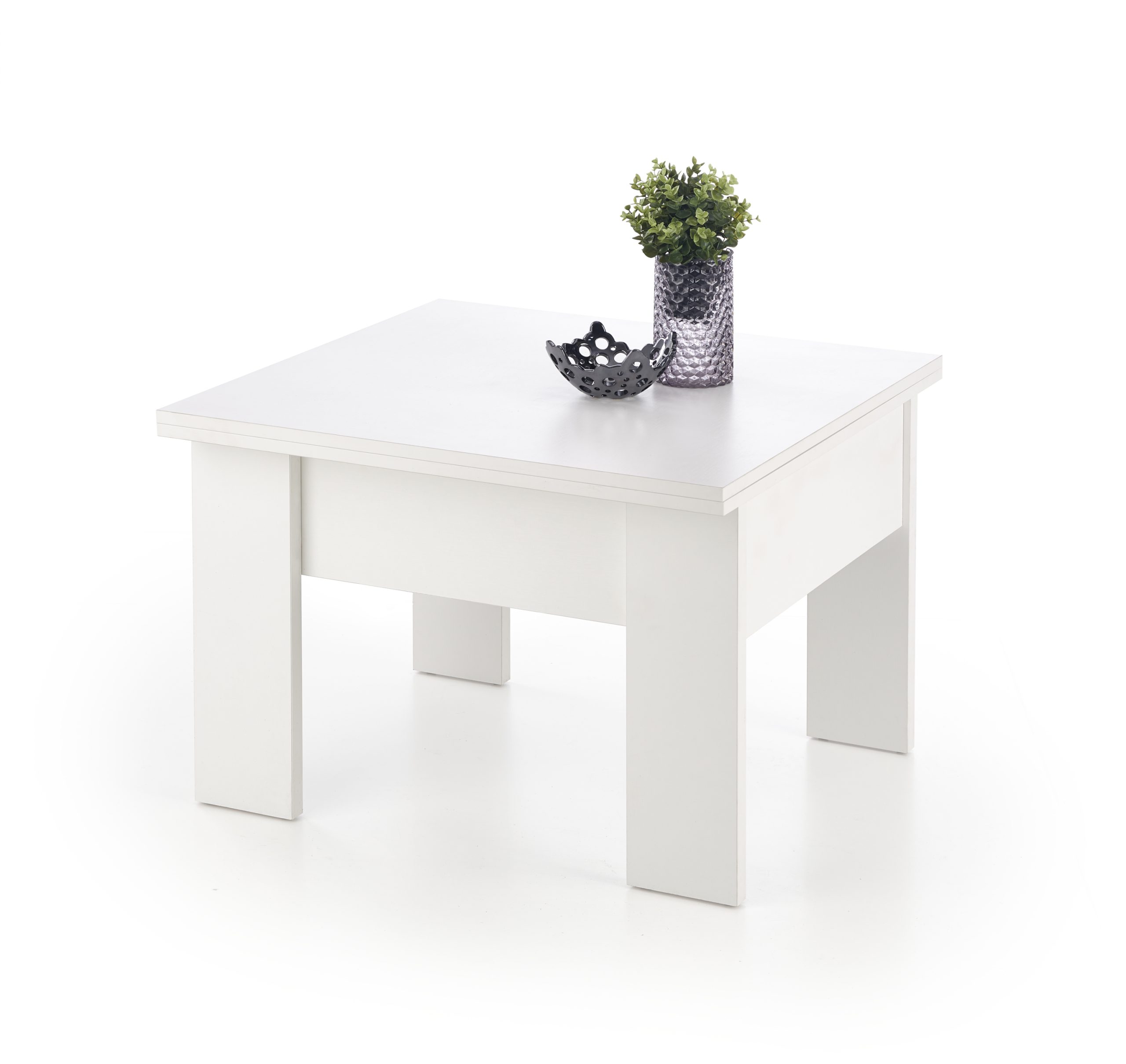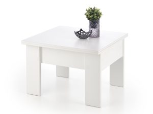 méretek: 80-160/80/53-79 cm, emelhető kávézóasztal, anyaga: laminált forgácslap, színe: fehér