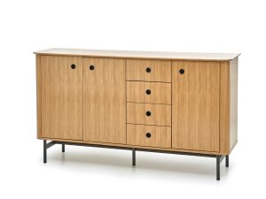 komód, méretek: 167/44/93 cm, anyag: MDF + natúr tölgy furnér / faforgácslap + natúr tölgy furnér / porfestett acél, szín: natúr tölgy / fekete