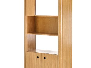 polc, méretek: 97/37/196 cm, anyag: MDF + natúr tölgy furnér / faforgácslap + natúr tölgy furnér / porfestett acél, szín: natúr tölgy / fekete