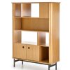 könyvespolc, méretek: 97/37/196 cm, anyag: MDF + természetes tölgy furnér / bútorlap + természetes tölgy furnér / porszórt acél, szín: természetes tölgy – fekete