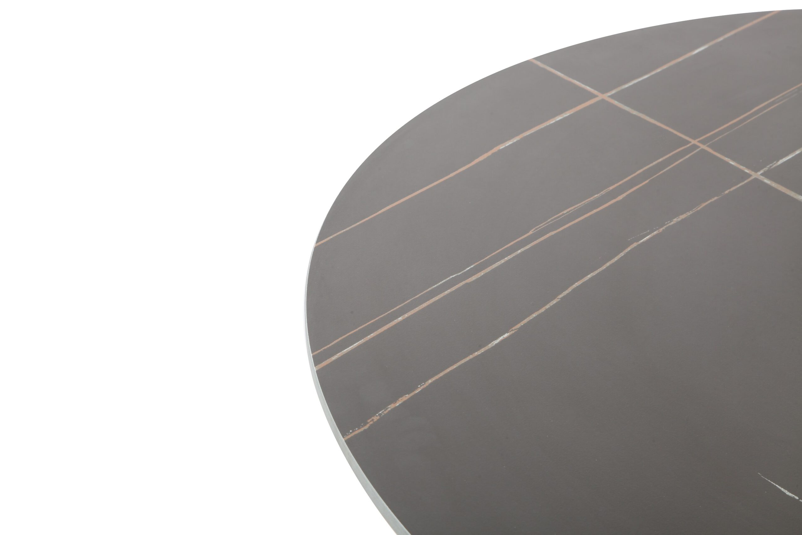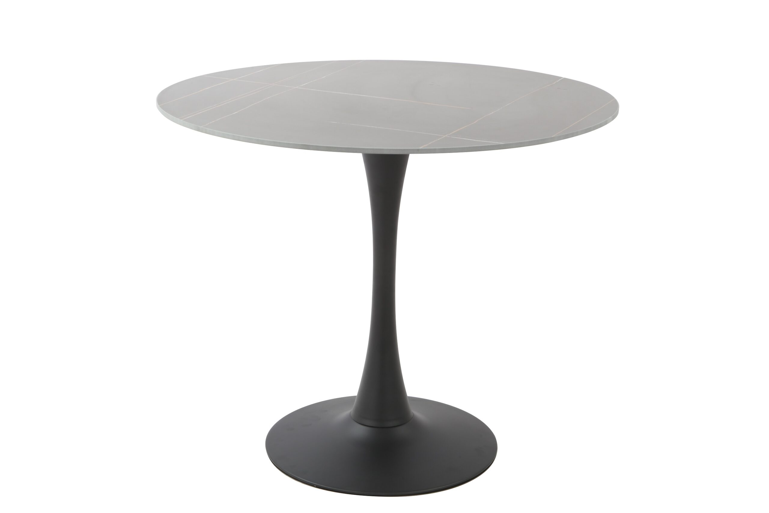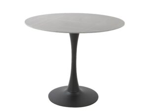Szinterezett kő asztal, fekete színben, a képen látható asztallap mintával, festett fekete fém lábbal.