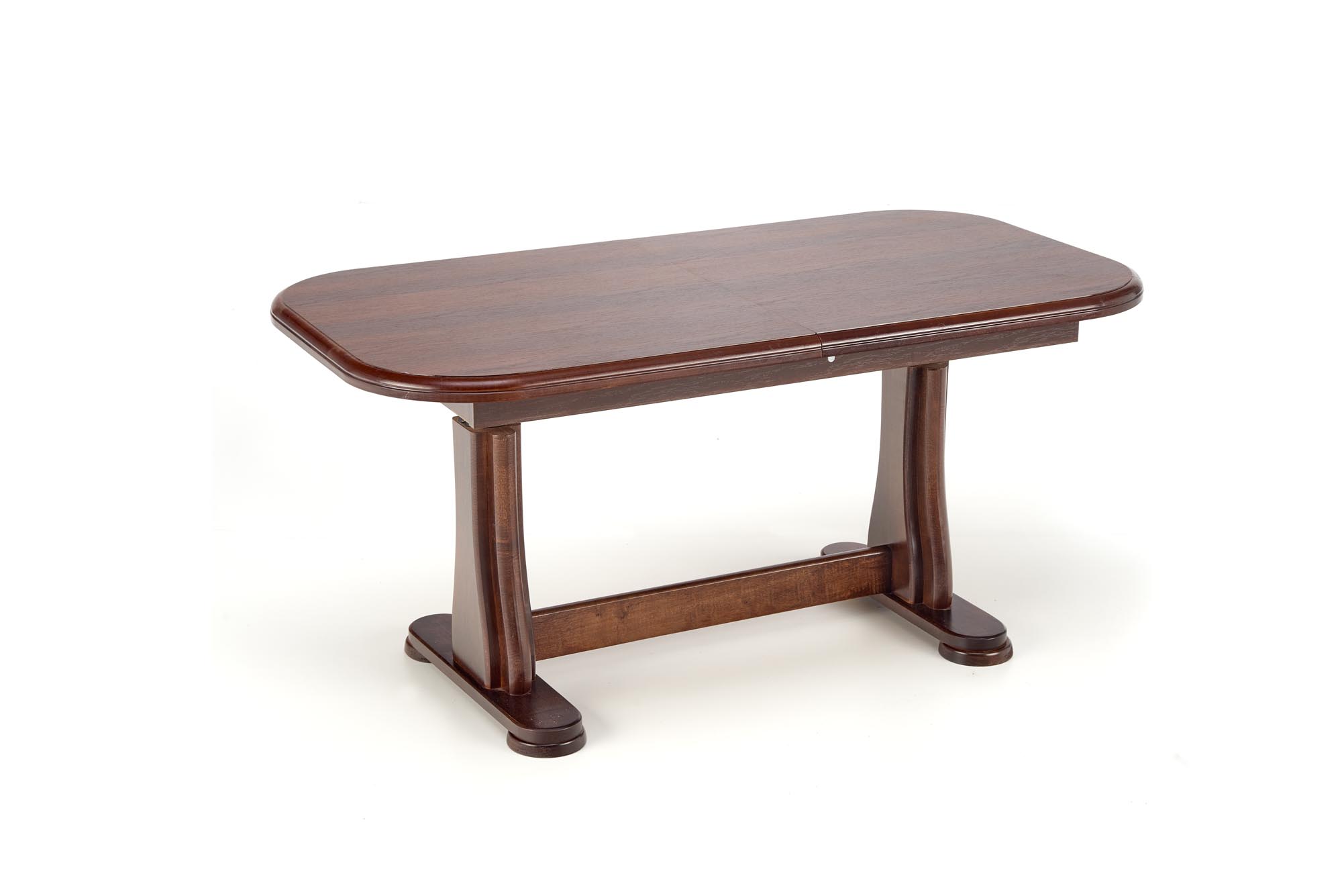 méretek: 125÷164/65/60÷72 cm, anyag: asztallap – laminált MDF, lábak – bükkfa, szín: sötét diófa