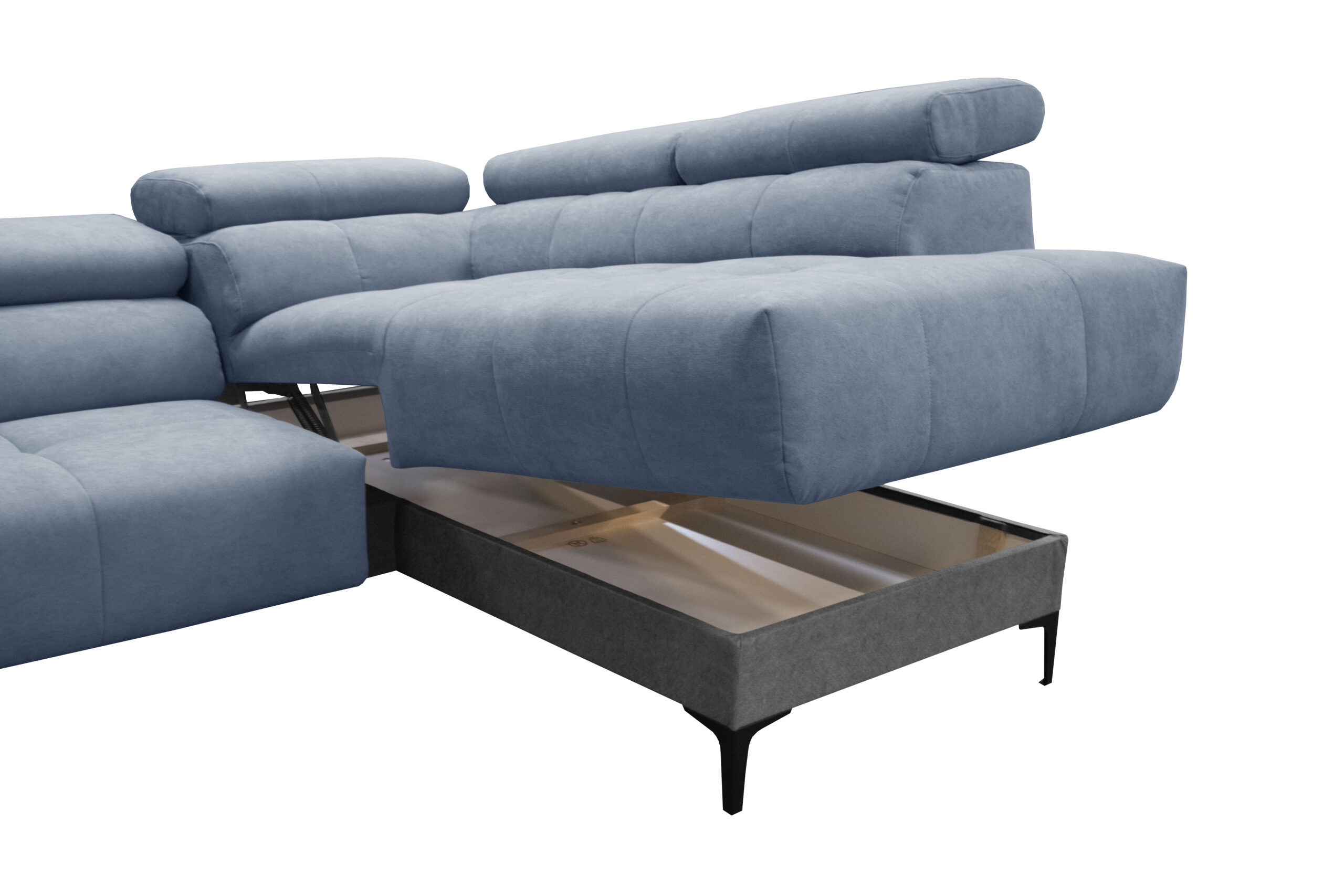 A fejtámlák szintén állíthatóak, így mindenki számára ideális támaszt nyújtanak, legyen szó egy pihentető estélyről vagy egy izgalmas filmes maratonról. A garnitúra praktikus ágyneműtartóval is rendelkezik, amely segít rendszerezni a párnákat, takarókat és egyéb textíliákat, így a nappali mindig rendezett maradhat.