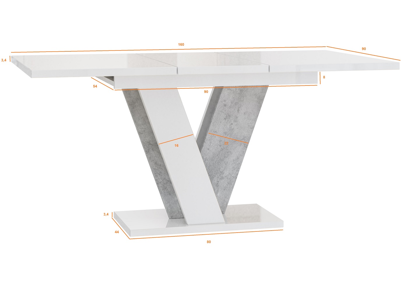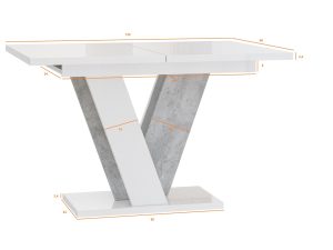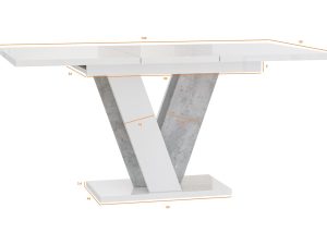 Viney Étkezőasztal – Magasfényű fehér / Beton