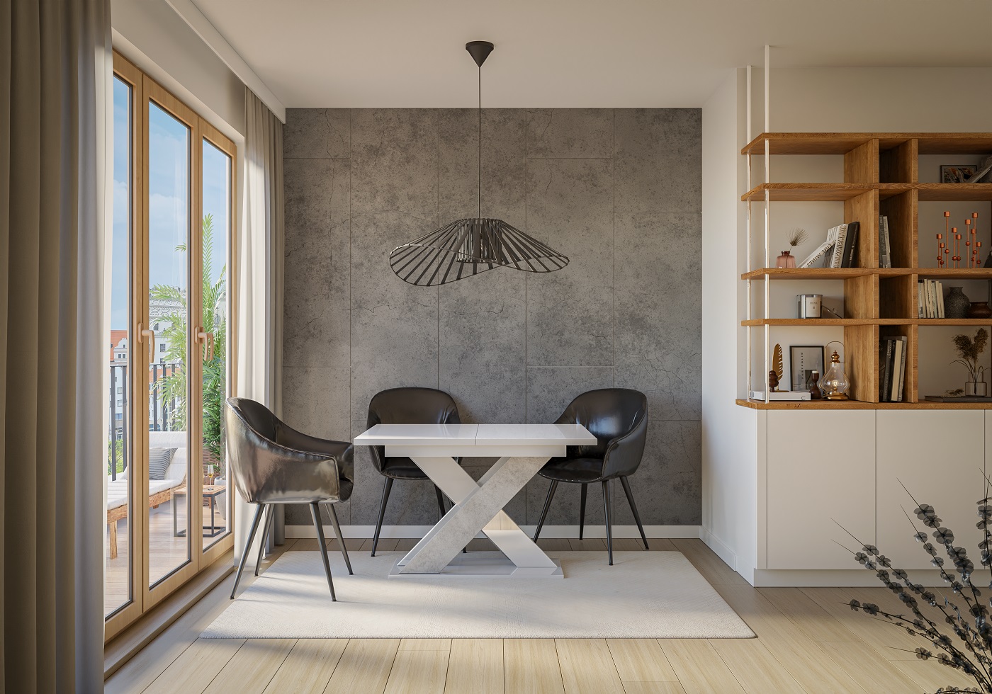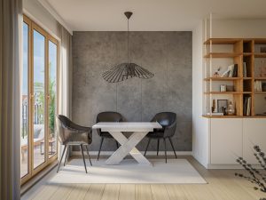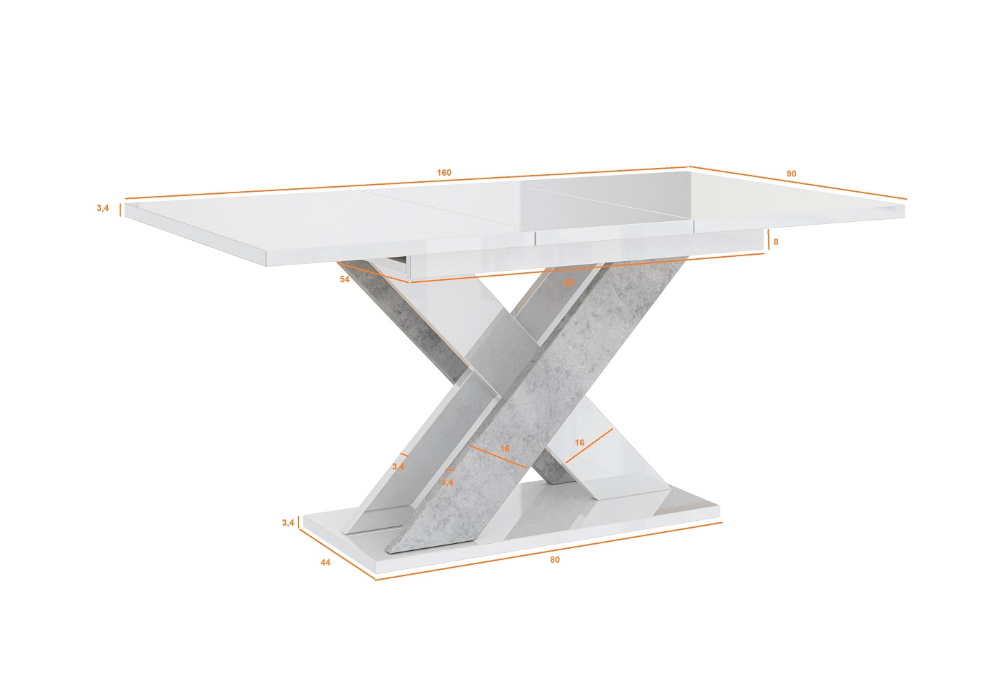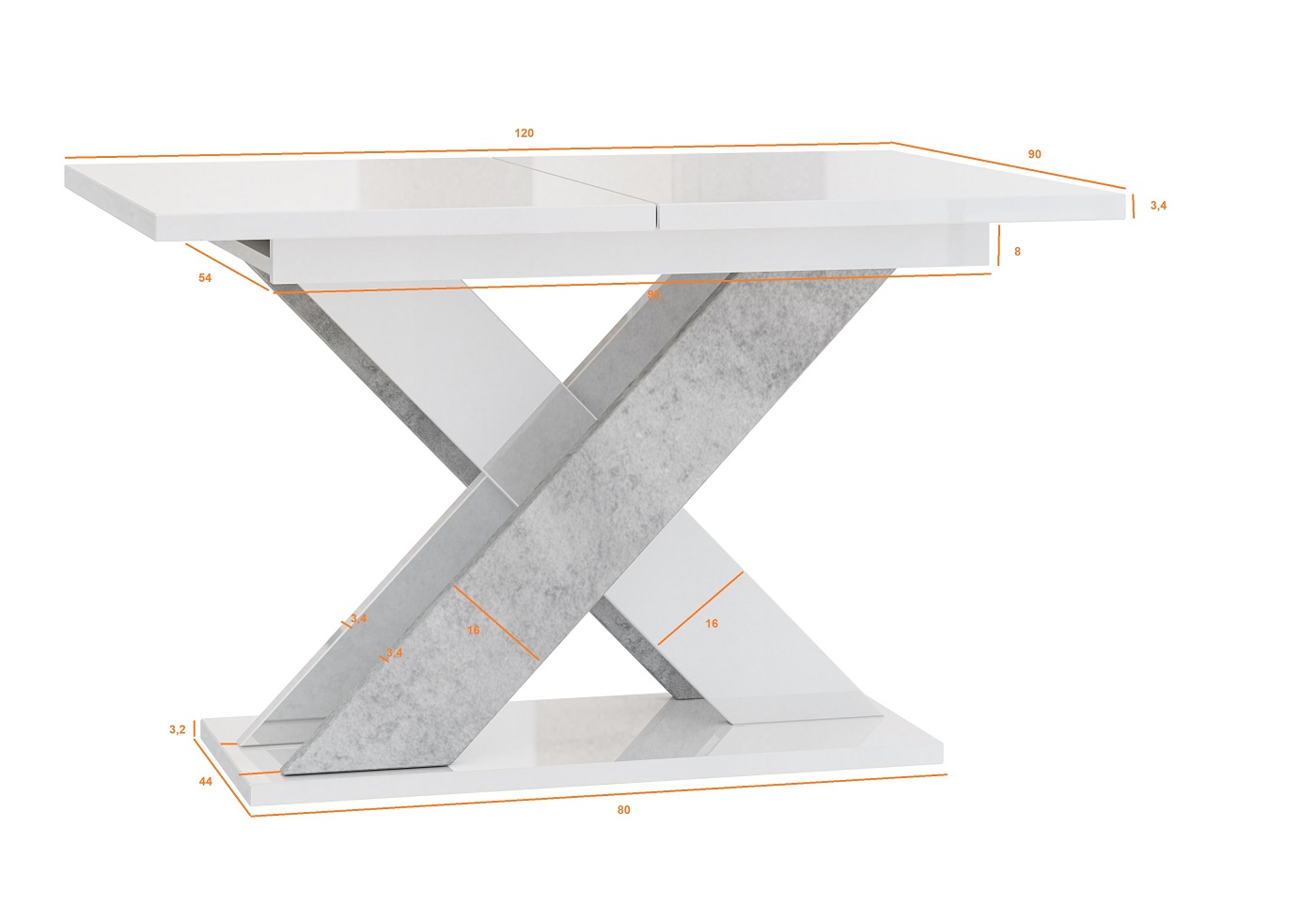 Xao Étkezőasztal – Magasfényű fehér / Beton